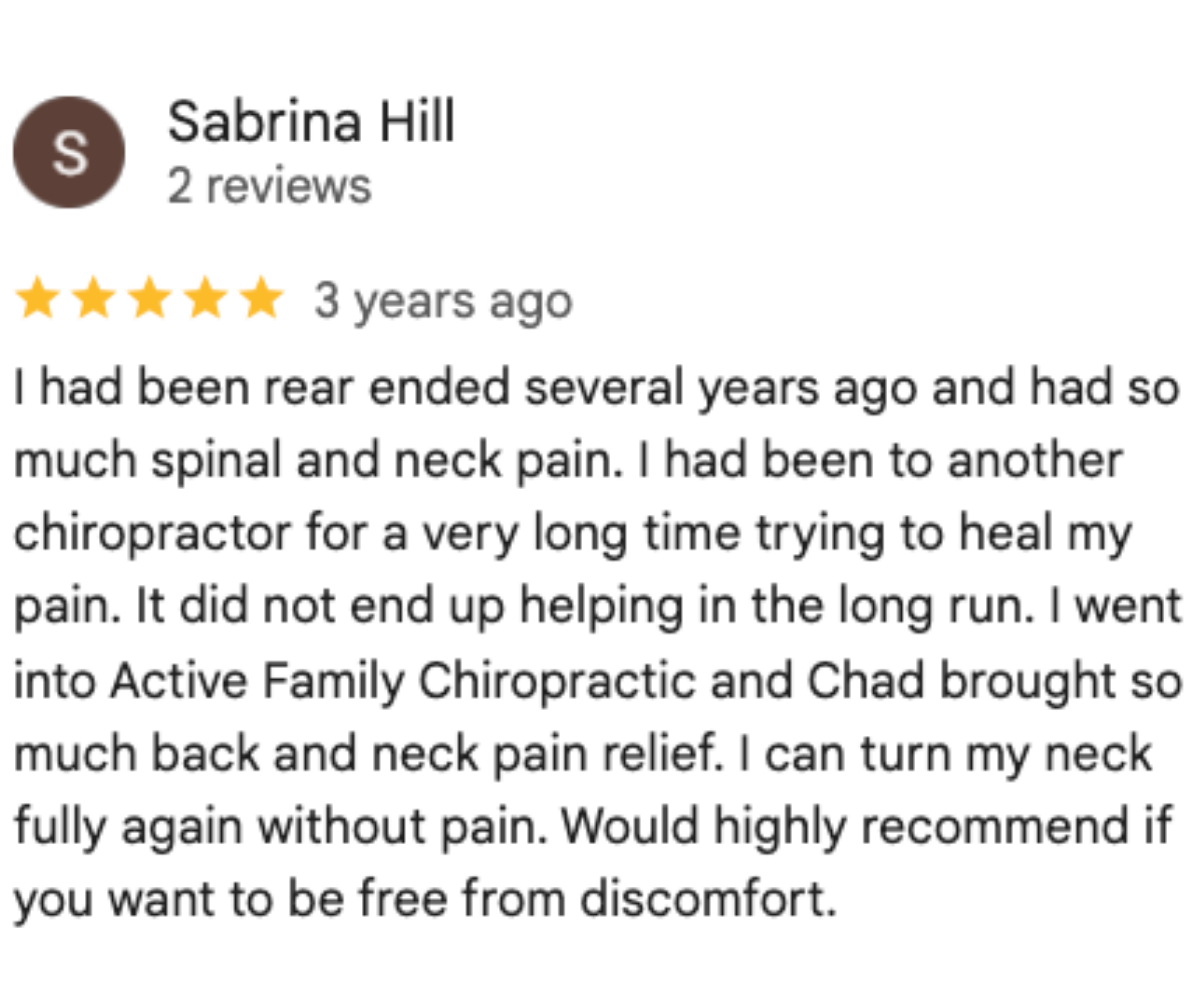 This website is operated by Active Family Chiropractic. By submitting your information, you agree to receive communications from Active Family Chiropractic as described in our